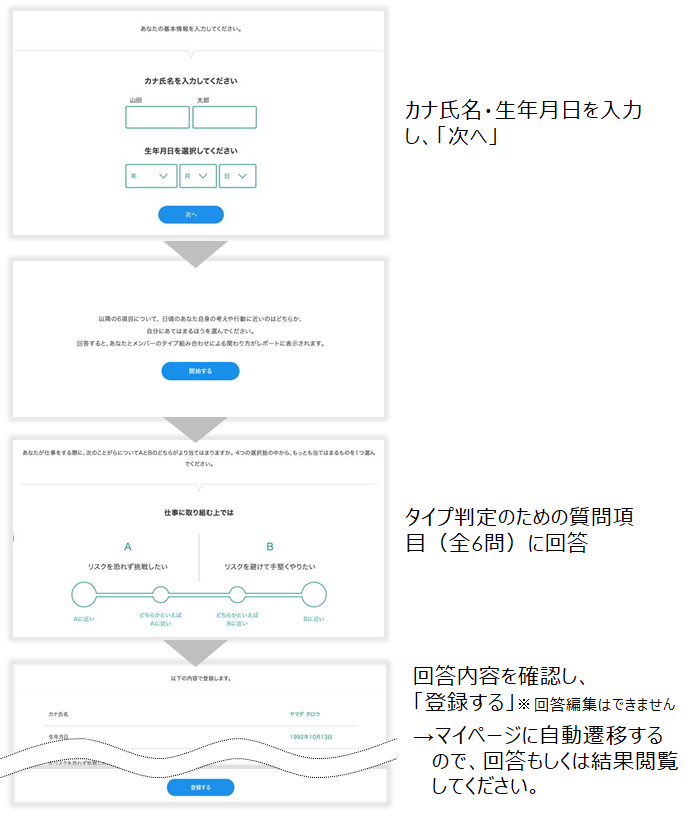 ※メンバーとしても登録がある上司ユーザーの場合は、メンバーとしての最新のタイプ回答が自動反映され、改めて回答する必要はありません。